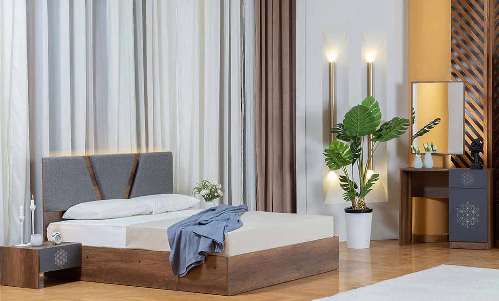 - السرير: عرض 160 سم إرتفاع 35 سم طول 200 سم